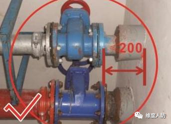 b.防護(hù)閥門設(shè)置離墻太遠(yuǎn)(錯(cuò)誤做法):