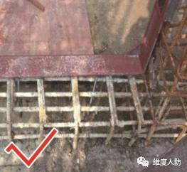 a.人防門下門檻梁未緊貼門框配筋(錯(cuò)誤做法):