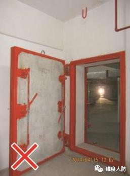 b.空調(diào)管道從防護(hù)門門洞穿過,阻礙防護(hù)門正常開啟(錯(cuò)誤做法):