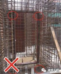a.門框下門檻支撐在結(jié)構(gòu)主筋上門框支撐未形成三角形支撐(錯(cuò)誤做法):
