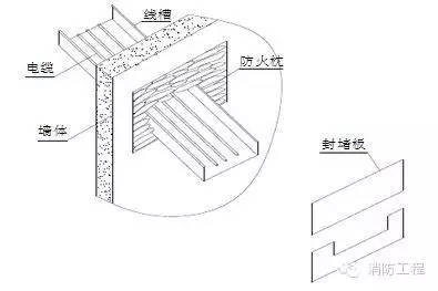 3.線槽橋架在跨越防火分區(qū)及線槽穿樓板的部位做防火封堵處理。封堵板用2mm厚防火板,具體做法如圖所示: