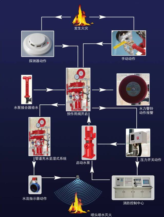 建筑消防設(shè)施工作原理及系統(tǒng)工作流程圖