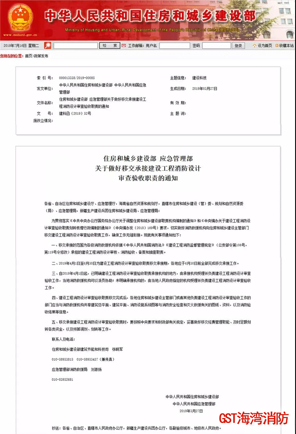 《中華人民共和國消防法》《建設工程消防監督管理規定》規定的建設工程消防設計審核、消防驗收、備案和抽查職責,自4月1日開始移交住房和城鄉建設部門,各地并于6月30日前完成全部移交承接工作。