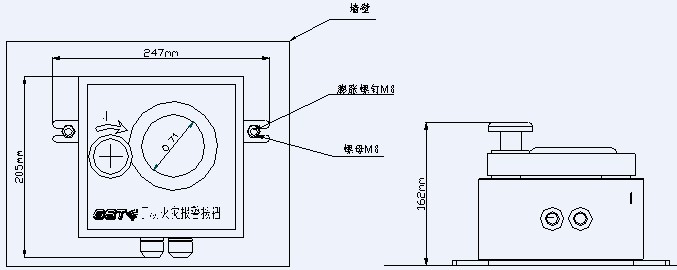 海灣常用防爆場合的手動報警按鈕型號有J-SAF-GST9211A(Ex)J-SAM-GST9116。海灣防爆手動按鈕在室外安裝時可采用立柱和壁掛安裝兩種形式,本文將介紹兩種海灣防爆手報按鈕室外安裝配套型號及示意圖。