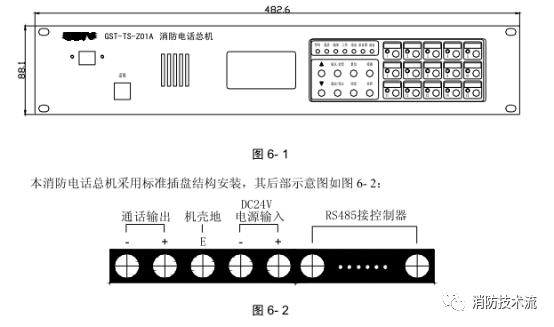 GST-TS-Z01A型消防電話總機外形尺寸及結(jié)構(gòu)示意圖如圖 6- 1 :