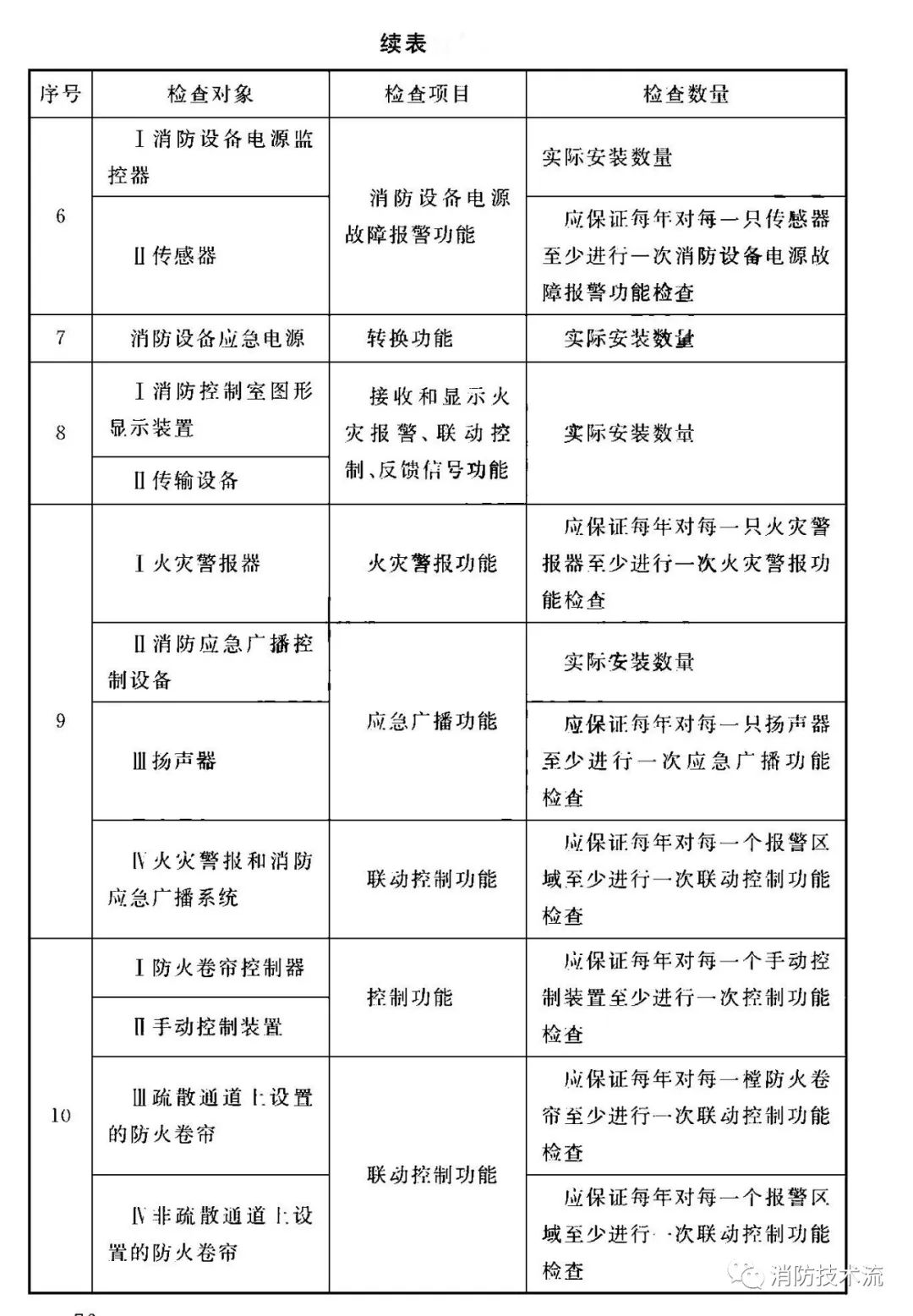 根據《 火災自動報警系統施工及驗收標準》要求,每年應按表中規定的檢查項目、數量對系統設備的功能、各分系統的聯動控制功能進行檢查。